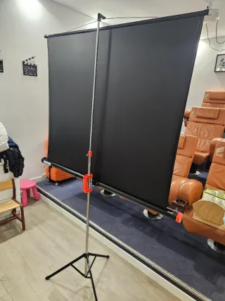 Pantalla portátil para proyector con trípode. - Pantalla de proyección. - Trípode de soporte. - Fácil de montar y desmontar. pantalla enrollable 1,80 de ancho x 1,30 de alto pero desde el suelo es 1,80 de alto