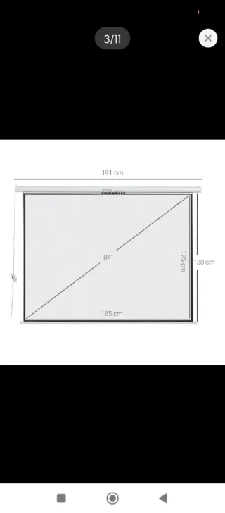 Pantalla de proyección para cine en casa o presentaciones. - pantalla color blanco mate. - Marco negro -Medidas 1;80x 1;80 de desplegado y enrollado - Muy buena de calidad -pesa unos 8 kilos
