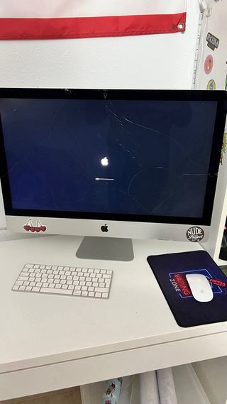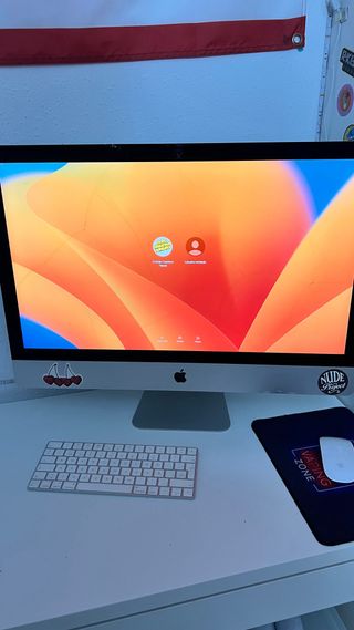 iMac 5K de 27 pulgadas del año 2017. Un ordenador de sobremesa con un diseño elegante y una pantalla de alta resolución. - Pantalla Retina 5K. - Procesador potente para multitarea. - Diseño todo en uno. El ordenador sufrió una caída frontal y por eso las marcas, pero no afecta a su uso, funciona todo genial menos la cámara frontal. Por lo demás ha tenido muy poco uso por no decir nada.