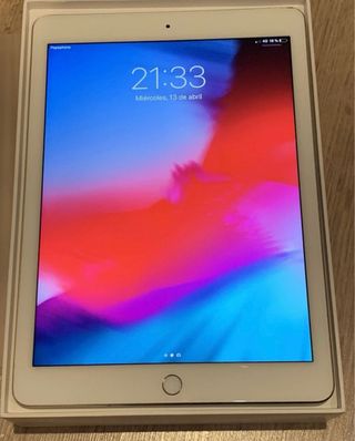 Tablet iPad Air 2 en color plata. Es el modelo wifi + celular Unico propietario, con su caja original y con factura, desde el dia 1 con protector y funda Se entrega con cargador original una funda y protector de pantalla - Pantalla Retina. - Chip A8X con arquitectura de 64 bits. - Cámara iSight de 8 MP.