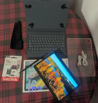 Samsung Galaxy Tab S5e en excelente estado. Es de las tablets más finas y ligeras del mercado, con una pantalla Super AMOLED de 10,5" y sonido AKG, ideal para multimedia y diseño. ¿Qué incluye el pack? ⭐Tablet S5e: Funcionamiento impecable y muy cuidada,SIN RASGUÑOS en pantalla Teclado Bluetooth: Para usarla como un portátil. ⭐Lápiz óptico: Perfecto para notas y dibujo. ⭐Funda transparente: Extra, para uso ligero. ⭐Accesorios: Cables de carga y caja original. 🚨Opcional: Tarjeta microSD 128GB (nueva) por +11€. ⚠️Nota: La funda del teclado tiene un ligero desgaste estético que no afecta a su uso (ver fotos). El resto está p