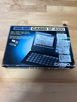 Agenda electrónica Casio SF-4000 con pantalla de 6 líneas. - Capacidad de almacenamiento de 30.000 caracteres. - Permite guardar aprox. 1.500 nombres y números de teléfono. - Incluye directorio telefónico, agenda y bloc de notas. - Artículo de colección. - Tiene sus pilas originales aun ( Dificultad para encontrar con sus pilas originales, Made in Japón) eso si gastadas. - No se si funciona, seguramente si, cambiar pilas y listo. - Artículo de colección