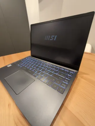 Portátil MSI Modern 14 B10MW en color negro y gris. 🦈 Diseño elegante y ligero. 🌟Teclado retroiluminado. 🖥️Pantalla de 14 pulgadas. 🗿Procesador I7-10510u 8 CPUs. 📟Memoria RAM 16GB. 🚀Windows 11PRO activado. 🧠Capacidad almacenamiento 476GB Total SSD M2 (Muy rápido⚡) Nota: Un pequeño bollo en la tapa de aluminio, en la esquina de una de las visgras está roto el plástico, sin comprometer el funcionamiento del pc. Incluye cargador (no orginal) Es una muy buena opción para el día a día y trabajos algo más exigentes gracias a su procesador i7 y su 16Gb de ram.