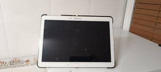 Tablet Samsung en color blanco. - Pantalla de alta resolución. - Diseño elegante y ligero. - Con entrada de auriculares, una entrada de sim, y otra de microsim - Cuenta con un lápiz para escribir en la pantalla - Para los que no han entendido aún, la tablet no funciona, no estoy seguro que puede ser puede ser un problema de conexión de cables, o algún otro problema.