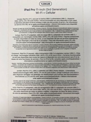 iPad Pro 11 3ª Gen 128GB Plata WiFi+Celular