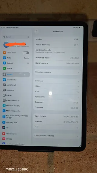 iPad Pro de 11 pulgadas, segunda generación, con 128GB de almacenamiento. - Pantalla Liquid Retina. - Chip A12Z Bionic. - Compatible con Apple Pencil (2ª gen). - Cámara trasera de 12MP y ultra gran angular de 10MP. Funciona todo perfectamente, pero como se ve en las fotos tiene algún signo de desgaste en las esquinas (que no afectan en nada solo estéticamente) y tiene un golpe en la pantalla que tampoco afecta en nada a su funcionalidad, como se ve una vez se enciende no se nota. Vendo solamente la tablet sin nada más.