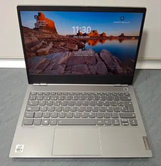 Ordenador Lenovo Thinkbook Gama Alta Procesador Intel corei5 10210U Decima Generación de 2.11Ghz Disco de estado sólido de 256Gb Nvme Memoria ram de 8Gb expandible hasta 32Gb Pantalla de 14 pulgadas Ips alta definición bordes delgados Fullhd 1920*1080 Graficos GPU: Intel Uhd de 3.9Gb Teclado Retroiluminado Lector De Huellas digitales Puertos: Red Rj45, Tipo C, Usb, Hdmi Estructura en aluminio ultrabook Windows 11 pro office