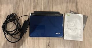 Portátil Acer Aspire One con pantalla de 10.1 pulgadas. Incluye cargador y manuales. - Color azul brillante. - Diseño compacto y ligero. - como se señala en la foto, le falta un embellecedor en el lado derecho.