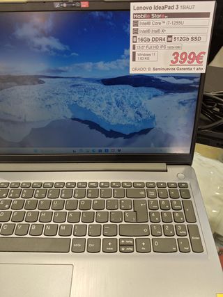 Portátil Lenovo Ideapad 3 en buen estado general: Intel® CoreTM i7-1255U Gráficos: Intel® Iris® X Memoria RAM: 16Gb DDR4 Almacenamiento: 512Gb SSD Pantalla: 15.6 Full HD IPS 1920x1080 Sistema Operativo: Windows 11 Peso: 1.63 KG Grado: B Todos nuestros artículos de segunda mano han sido testeados debidamente para comprobar su correcto funcionamiento. Damos 1 año de garantía en artículos usados y 3 años en artículos nuevos. Quieres verlos? Pásate por alguna de nuestras tiendas: MOBILE STORE MALAGA Avda. de la Aurora, 19 Calle Armengual de la Mota, 10 MALAGA Teléfono (Whatsapp): 627119234