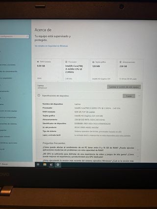 Portátil Lenovo V110-15AST en muy buen estado y de buen funcionamiento. - Pantalla de 15,6” - Ideal para navegar, ver vídeos, Word/Excel, estudios... - Batería correcta - Cargador original incluido - Siempre usado en casa, bien cuidado - S.O: Win 10 Home Es un modelo de gama básica y funciona algo lento para estándares actuales, recomendable para uso sencillo o para quien quiera mejorar rendimiento cambiando el disco a SSD.