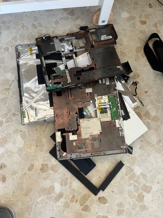 PARA REPARAR. Vendo portátil de la marca Lenovo, modelo V15-ADA, con corto y placa base posiblemente quemada. No carga la batería. El PC en sí funciona pero ya no tiene carga la batería, así que no enciende. Le he quitado el disco duro, pero todo lo demás sigue dentro en buenas condiciones. Tiene un procesador AMD Ryzen 3 3250U, 8GB de RAM DDR4-2400 y una pantalla de 15,6'' FHD. Incluyo cargador original y maletín de transporte. Tiene además unas manchas en la carcasa de fuera, apreciables en fotos, que no impiden su funcionamiento.