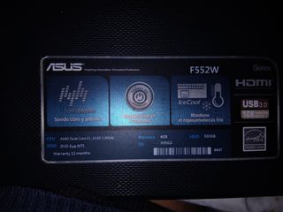 Portátil ASUS en color plata. - Modelo F540S. - Pantalla de 15.6 pulgadas. - Incluye cargador.