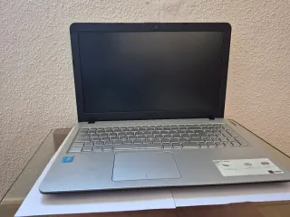 Portátil ASUS con acabado plateado y detalles en negro. Tener en cuenta que tiene un desperfecto en la pantalla por lo demás funciona y está todo bien. - Pantalla de 15.6 pulgadas. - Teclado numérico integrado. - Diseño elegante y moderno.