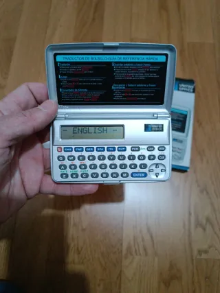 Traductor electrónico de bolsillo. Con manual de instrucciones en castellano. Nuevo sin usar y en su caja original. - Diseño compacto y portátil. - Pantalla LCD. - Teclado QWERTY.