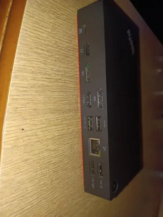 Adaptador de ordenador de la marca Lenovo, modelo ThinkPad. Diseño compacto y elegante.puedes enchufar dos pantallas de ordenador y el ordenador portátil o puedes enchufar ordenador portátil con la televisión. Tienes entradas de usb y hdm y areculares y para móviles - Puertos USB. - Puerto de carga.