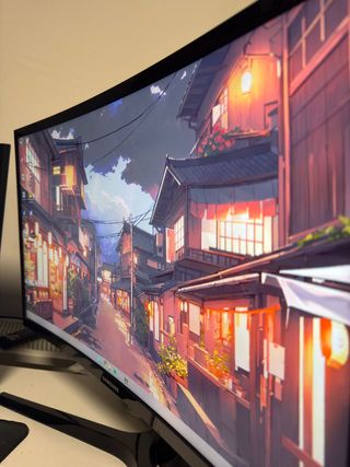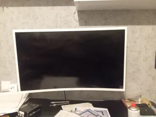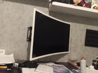 Monitor curvo de 32 con soporte pared de brazo de regalo. Tiene una pequeña muesca/ rallajo en la pantalla apenas perceptible.
