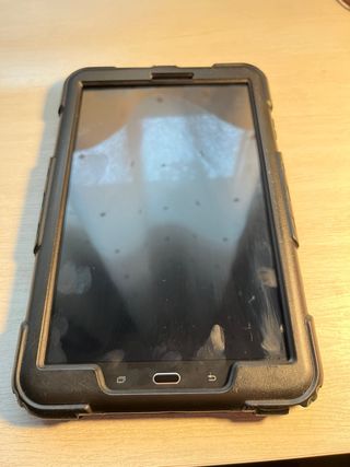 Tablet Samsung Galaxy Tab A del año 2016 en color negro. Ideal para uso diario. - Pantalla de 7 pulgadas. - Procesador Quad-Core. - 8 GB de almacenamiento interno. - Cámara trasera de 5 MP y frontal de 2 MP. - Incluye una funda (está un poco rota) - No incluye cargador - ENTREGA EN PERSONA