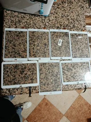 Conjunto de pantallas de repuesto para tablets Samsung.se vende está pantalla des conozco su función las vendo para pieza por 25 euros todas de ahí su precio - Pantallas de diferentes modelos. - Color blanco.