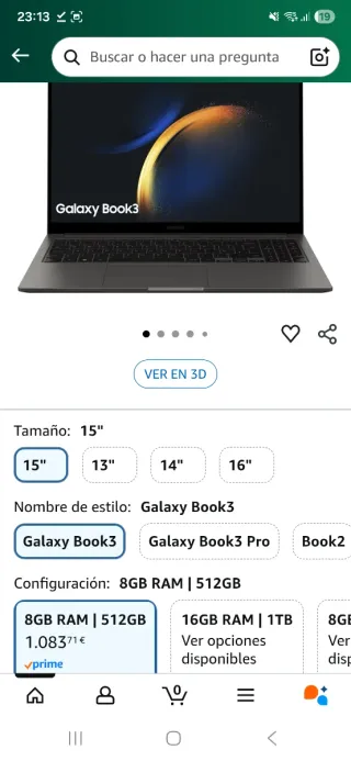Samsung Galaxy Book3 15 8GB RAM 512GB Gris