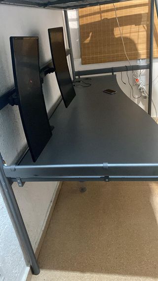 Se venden dos pantallas gaming con brazo. El conjunto está fabricado en metal y plástico. buenísima calidad! - Color negro y gris.