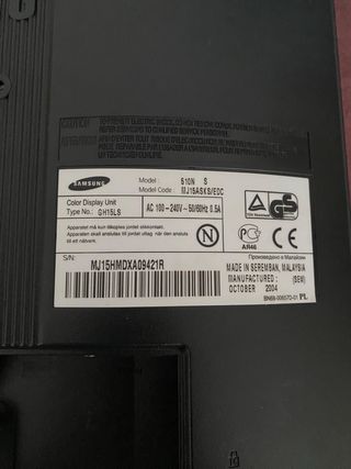 Monitor Samsung SyncMaster 510N de 15 pulgadas. - Pantalla de 15 - Modelo SyncMaster 510N - Color blanco y negro -Incluye ambos cables para conectarlo -Funciona, en buen estado