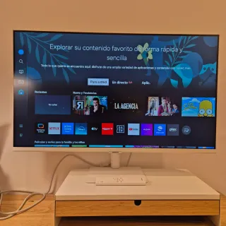Monitor Smart de 32 pulgadas con diseño moderno. - Pantalla de gran tamaño para una experiencia inmersiva. - Funcionalidad Smart Hub para acceso a aplicaciones y contenido.