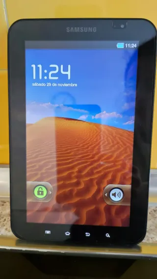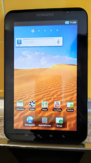 Tablet Samsung Galaxy Tab GT-P1010 en color negro. Nueva, sin usar. Sin la caja original. Mantiene plásticos originales. - Pantalla de 7 pulgadas. - 13 GB memoria interna - Ranura SD para memoria externa - Conectividad Wi-Fi y bluetooth - Cámara trasera y frontal. - Cargador original