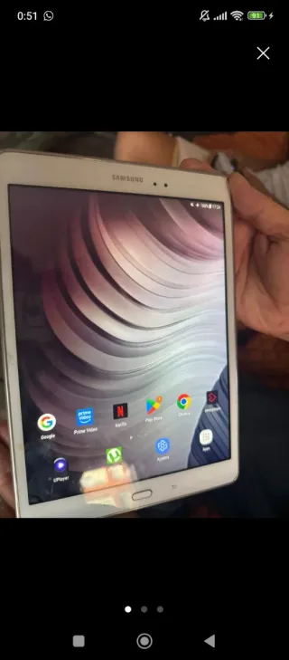 Tablet Samsung Galaxy Tab A SM-T550 en color blanco. Tiene algunas marcas de uso en la pantalla. Esta usado del tiempo pero funciona muy bien para el tiempo que tiene, funda incluida color negro, un poco desgastada.... - Pantalla de 9.7 pulgadas. - Incluye funda - Android 7.1.1 - Batería de 6000mAh - Micro SD (no incluida) - Ram: 1.5Gb - Almacenamiento: 16Gb Más información sin ningún tipo de problema escríbame, gracias...