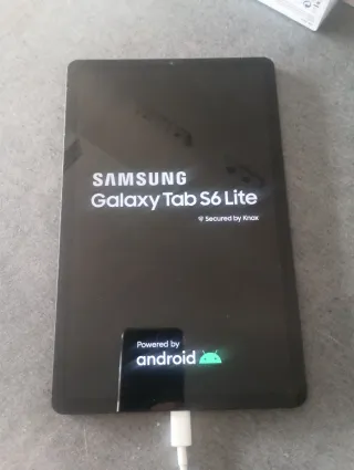 Tablet Samsung Galaxy Tab S6 Lite. Modelo SM-P610. Almacenamiento de 128 GB. Se vende para PIEZAS. La tablet enciende si está conectada a la red, pero se reinicia continuamente, sin llegar a pasar de la pantalla inicial del logo de Samsung. Si desconectas el cargador se apaga. Desconozco si puede tener patrón o cuenta de Gmail. Incluye caja. NO incluye cargador. Se envía. NO acepto devoluciones al venderse como deteriorada. NO es negociable.