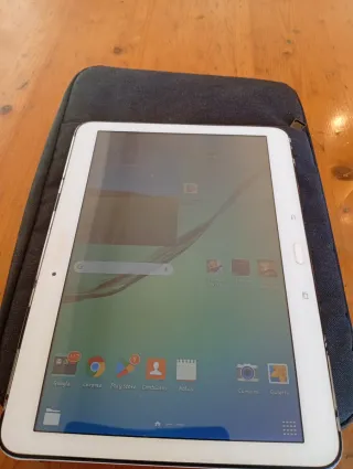 Tablet Samsung Galaxy Tab 3 en color blanco. Solo tablet sin cargador . Va algo lenta tiene sus años , pero funciona bien y la batería le dura aún para ver alguna pelicula No regateos - Pantalla de 7 pulgadas. - Cámara frontal y trasera. - Conectividad Wi-Fi.