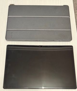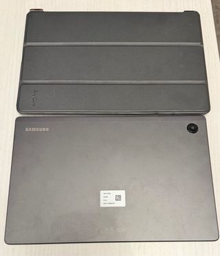 Tablet Samsung Galaxy Tab A8 con funda tipo libro y protector de pantalla Viene con su caja y cargador original. también incluye otro protector de pantalla.