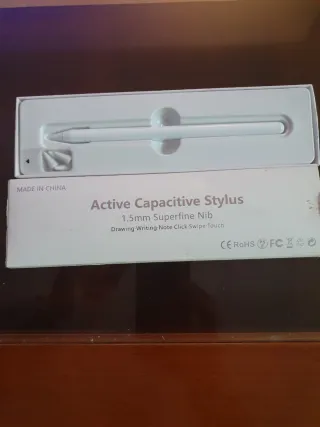 Vendo lápiz táctil (stylus) capacitivo en estado impecable. Lo compré hace aproximadamente un año (navidades 2024) y solo lo he usado unas 10 veces como máximo. Ideal para dibujar, tomar notas o navegar en tablet o móvil con precisión. 📦 INCLUYE TODO LO ORIGINAL: · Stylus capacitivo activo · 3 puntas superfinas de repuesto (1.5mm) · Funda/estuche de tela negra (guarda-lápices) · Manual de instrucciones · Cable de carga tipo C ✨ CARACTERÍSTICAS (según la caja): · Punte superfino de 1.5mm · Perfecto para dibujar, escribir, tomar notas · Compatible con pantallas capacitivas · Carga rápida (15 minutos aprox.) · Autonomía: ~8 horas