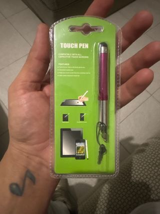 Sin estrenar! Diseño de altra precisión y sensibilidad para pantallas de móviles o tablets. Funciona de manera similar a un dedo pero con mayor precisión. También llamado lápiz óptico, capacitivo o stylus. • De agarre cómodo. • Punta de goma. • Diseño delgado y ligero. • Incluye cordón para mayor comodidad y lazo para atarlo al móvil. • Longitud: 11cm.
