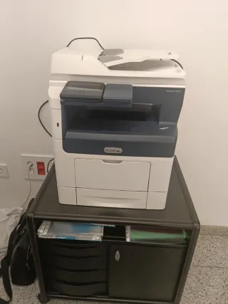 Impresora multifunción Xerox VersaLink B405 en color azul y blanco. Ideal para oficinas. - Escanea, copia e imprime. - Pantalla táctil a color. - Conectividad de red.