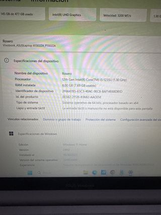 Portátil de la marca Asus. Datos preguntar privado. Sin cargador y alguna burbujira en filo inferior pantalla que no afecta y apenas se aprecia. - Modelo: [Insertar modelo si se conoce] - Color: [Insertar color si se conoce] - Pantalla: [Insertar tamaño de pantalla si se conoce] - Procesador: [Insertar procesador si se conoce] - Memoria RAM: [Insertar RAM si se conoce] - Almacenamiento: [Insertar tipo y capacidad de almacenamiento si se conoce] - Sistema Operativo: [Insertar SO si se conoce]