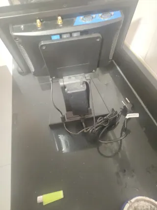 !Faltan Fuente Alimentación!! (12V 5A) !!!Sin Disco Duro SSD!!! TPV táctil nuevo con pantalla principal de 15" táctil resistiva y pantalla secundaria de 2 líneas para información al cliente. Procesador: Intel Celeron J1900 Quad-Core RAM: 2 GB DDR3 Almacenamiento: SSD 64 GB (no incluye) Pantallas: – Principal: 15" táctil – Secundaria: display LED 2 líneas Sistema operativo: Windows 10 Puertos: USB, RS232, VGA, RJ45, audio, alimentación DC Montaje: Base incluida Equipo compacto y robusto, ideal para puntos de venta en comercios, hostelería y retail, ofreciendo rapidez y facilidad de uso.