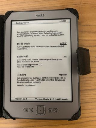 Lector de libros electrónicos Amazon Kindle en color negro Modelo 4.1.3.. - Pantalla de tinta electrónica. - Botones de navegación físicos. no táctil . - Funda incluida.