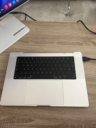 MacBook Pro de 16 pulgadas Procesador: Chip M4 Max con CPU de 16 núcleos y GPU de 40 núcleos. Memoria (RAM): 64 GB de memoria unificada. Almacenamiento: 1 TB SSD. Pantalla: Liquid Retina XDR de 16,2" con acabado nanotexturizado (diseñado para reducir reflejos manteniendo la calidad de imagen). Teclado: Configuración para España (ESP). EveryMac.com +4 Conectividad y Otros Detalles Puertos: Tres puertos Thunderbolt 5 (USB-C), puerto HDMI 2.1, ranura para tarjeta SDXC, toma de auriculares de 3,5 mm y puerto de carga MagSafe 3. Cámara: 12MP Center Stage con soporte para Desk View. Audio: Sistema de seis altavoces de alta fidelidad