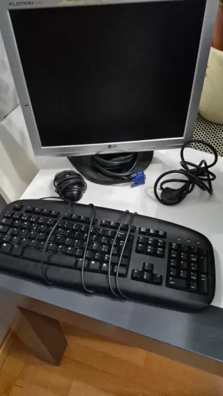 Vendo pack de periféricos para PC en perfecto estado. Ideal para oficina o equipo básico. Incluye: Monitor DGM: Pantalla con acabado plata. Incluye cable VGA. Altavoces Woxter 2.1: Subwoofer + 2 satélites. Muy buen sonido y bajos potentes. Conexión jack 3.5mm. Teclado Rainbow: Multimedia con pad numérico.