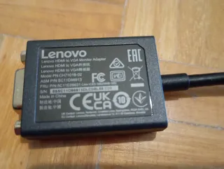 Adaptador de monitor Lenovo para conectar dispositivos HDMI a pantallas VGA. - Modelo: PN.CH71018-02 Adaptador de Lenovo que permite conectar un dispositivo con salida HDMI a un monitor o proyector con entrada VGA. Función: Convierte señales digitales HDMI a señales analógicas VGA. Compatibilidad: Diseñado para interoperar con sistemas ThinkPad y pantallas analógicas comerciales. Diseño: Cuenta con un conector HDMI en un extremo y un puerto VGA en el otro.