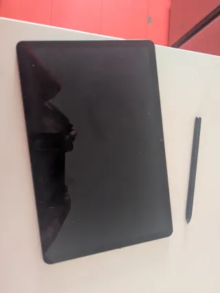 Tablet Samsung Tab S9 para piezas en color negro. Incluye lápiz. Tiene un golpe en la pantalla y no se enciende la propia pantalla por lo demás está en perfecto estado - Lápiz óptico incluido.