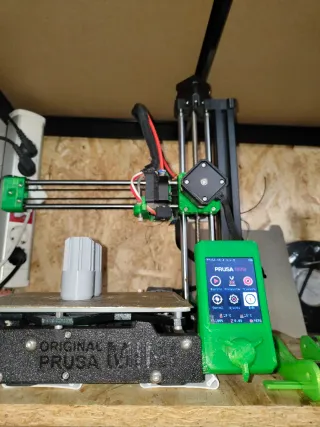 Impresora 3D Prusa Mini en color negro y verde. Ideal para proyectos de impresión. - Pantalla LCD a color. - Soporte para filamento PETG. - Piezas impresas en PETG - Rodamientos igus en eje Y - módulo Wi-Fi 🛜 integrado - dimensión de impresión 180*180*180