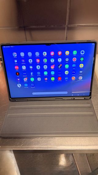 Tableta Samsung Galaxy Tab S9 Ultra con pantalla grande. - Pantalla de 14.6 pulgadas. - Color negro/gris. La Galaxy Tab S9 Ultra es el último modelo estrella de la gama de tablets de Samsung. Tiene una increíble pantalla Dynamic AMOLED 2X de 14.6 pulgadas, lo que la convierte en la más grande de las tabletsGalaxy S9. Vendo o cambio