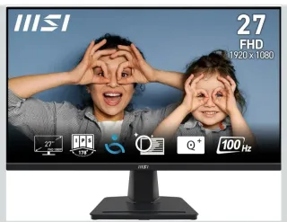 Monitor profesional MSI Pro MP275 de 27 pulgadas. Ideal para tareas de oficina y uso general. - Resolución Full HD (1920 x 1080). - Panel IPS con amplio ángulo de visión de 178°. - Tasa de refresco de 100 Hz para una experiencia visual fluida. -HDR Ready - Pantalla TUV - Altavoces integrados - Antiflicker Eye-Q Check - Diseño elegante en color negro.