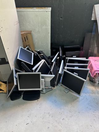 Conjunto de pantallas de ordenador para uso en oficina. - Pantallas de 19 pulgadas - Marcos en color negro y plateado. - Funcionan - Usan cable VGA *venta urgente