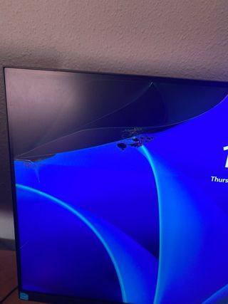 Monitor AOC de 23 pulgadas con tasa de refresco de 75Hz. La pantalla presenta una rotura en la esquina superior izquierda. - Tamaño de pantalla: 23 pulgadas. - Tasa de refresco: 75Hz. El precio se puede negociar.