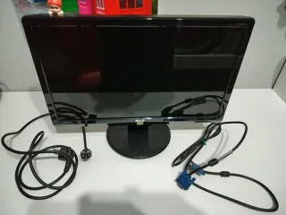 pantalla monitor de la marca Hanns Spree con adaptador de HDMI a VGA y también con adaptador de audio para que puedas conectar tus altavoces o auriculares. NO TIENE HD