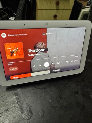 Pantalla altavoz inteligente 7" Google Nest Hub de segunda generación. - Diseño moderno y elegante. - Interfaz intuitiva. - Sonido muy potente - Solo el hub y cargador con cable largo,de unos 3 metros (lleva cinta aislante,funciona perfecto)