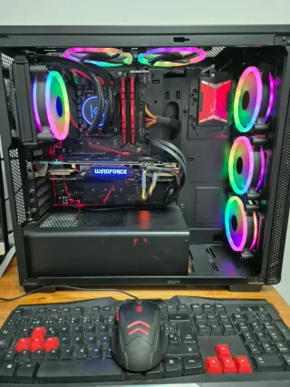 Potente ordenador de sobremesa para gaming y tareas exigentes. Diseñado para un alto rendimiento. - Procesador Intel Core i7 9700K. - 32GB de memoria RAM. - Almacenamiento rápido de 1TB SSD sansung 860 evo - Disco duro adicional de 4TB para gran capacidad. - Sistema de iluminación RGB personalizable. Con control remoto placa base gigabyte Z390 AORUS PRO disipador líquido cooler Master fuente de alimentación corsair TX750M CAJA MSI FORGE 100M GRAFICA ASUS GEFORCE GTX 960 4GB sistema operativo Windows 11 pro 64bits mas informacion el las fotos precio algo negociable