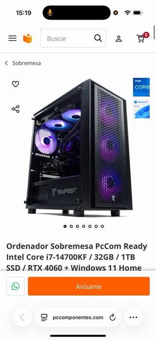 Vendo PC en excelente estado, funcionando perfecto y listo para enchufar y usar. Ideal para gaming, estudio o trabajo profesional. 🔹 Windows 11 instalado y actualizado 🔹 Procesador: Intel Core i7-10700 (8 núcleos / 16 hilos – muy potente) 🔹 Gráfica: NVIDIA GeForce GTX 1660 SUPER (perfecta para jugar en calidad alta a 1080p) 🔹 RAM: 16 GB (va súper fluido en multitarea y juegos) 🔹 Equipo: Predator PO3-620 🎮 Mueve juegos como Warzone, Fortnite, GTA V, Valorant, etc. sin problema. 🚀 Ideal también para edición de vídeo, diseño gráfico o streaming. Ordenador muy equilibrado, rápido y estable. Se puede ver y probar sin compromiso.
